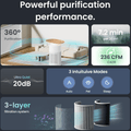 • HEPA filtrs: likvidē līdz pat 99,97% no gaisā esošajām daļiņām, tostarp PM2.5, baktērijas un alergēnus.