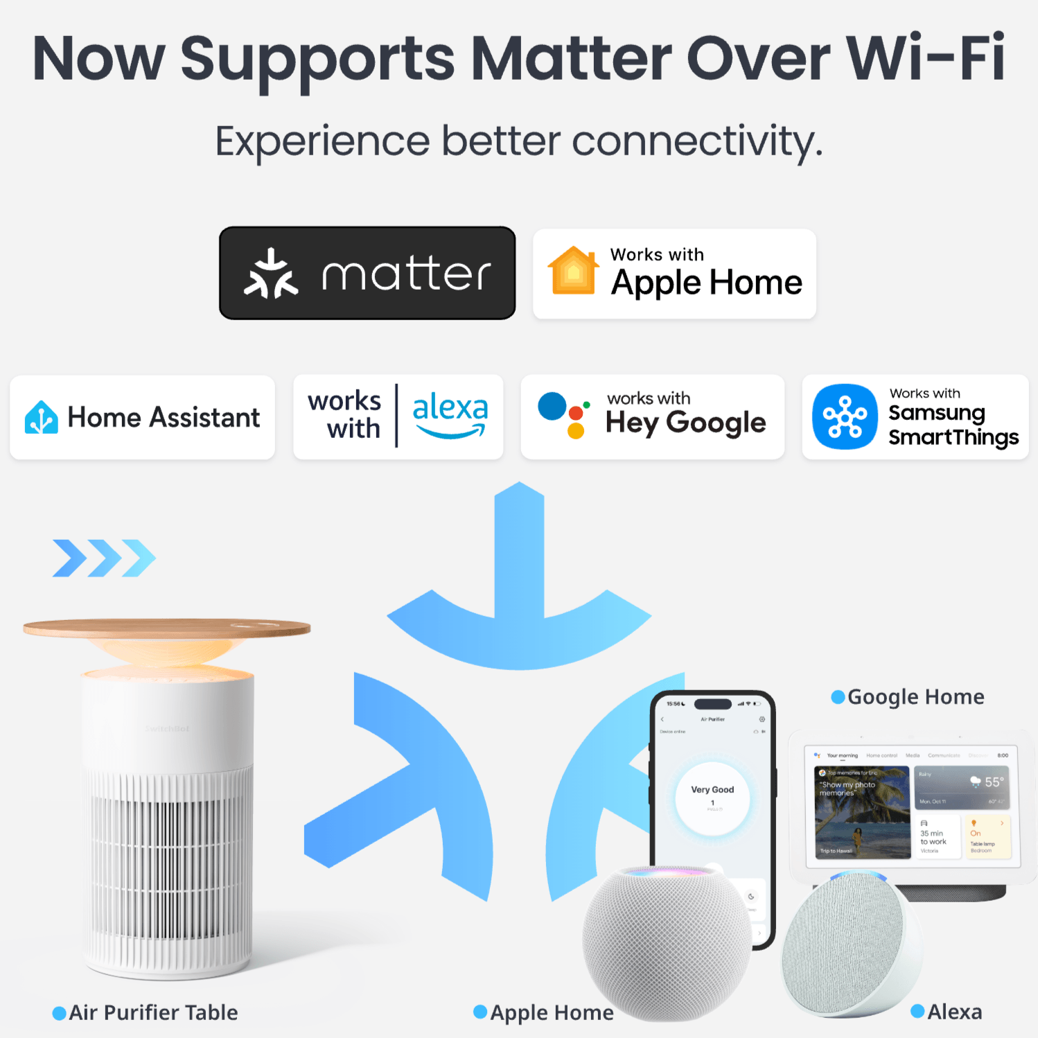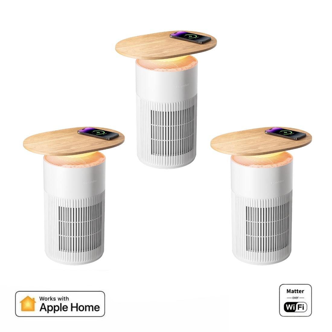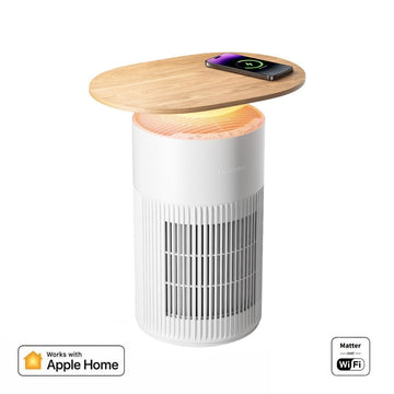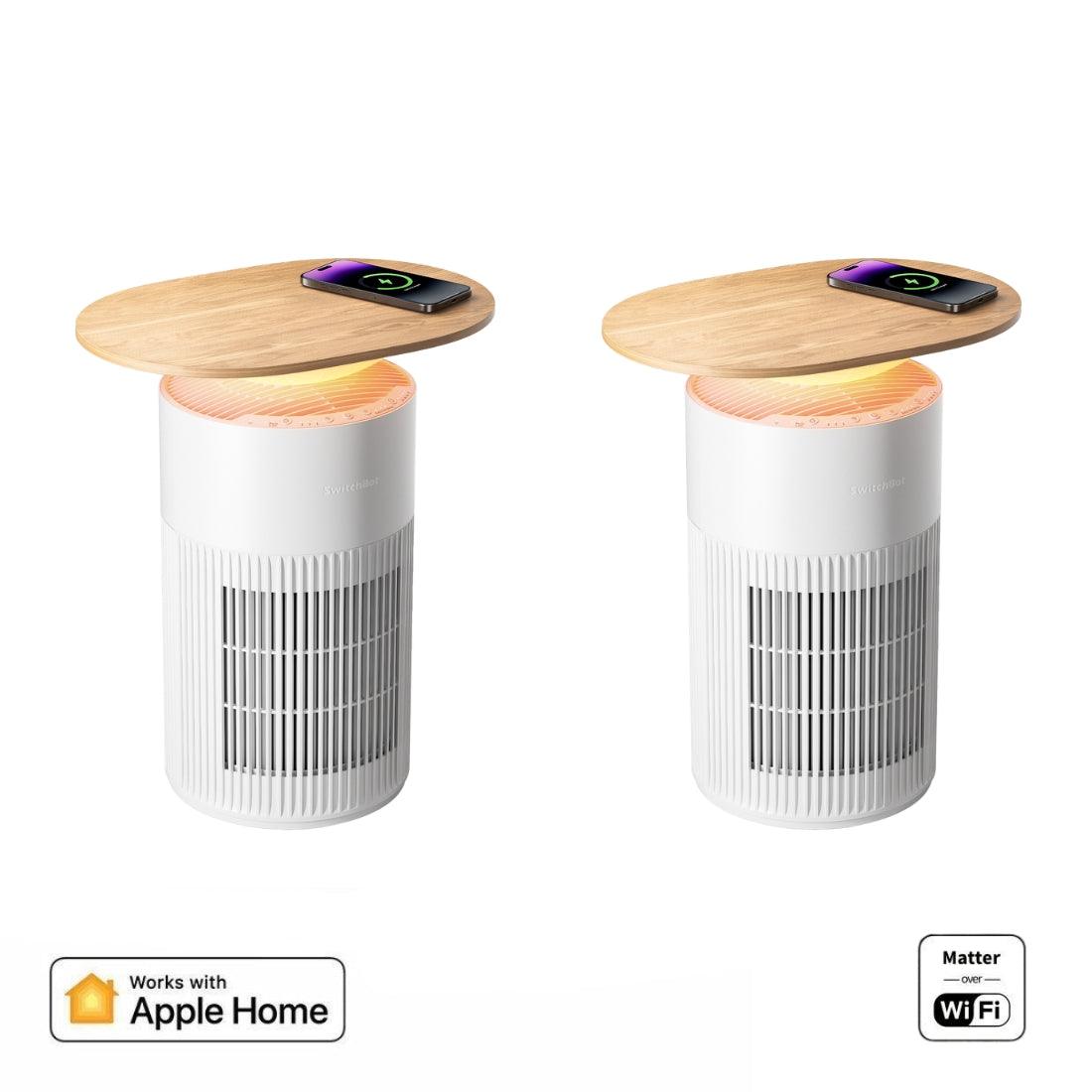 SwitchBot Air Purifier Table nav vienkārši ierīce — tas ir jaunās paaudzes risinājums, kas apvieno gaisa attīrītāju, naktsgaldiņu, viedās mājas kontrolpunktu, apgaismojumu un bezvadu lādētāju vienā elegantā korpusā.